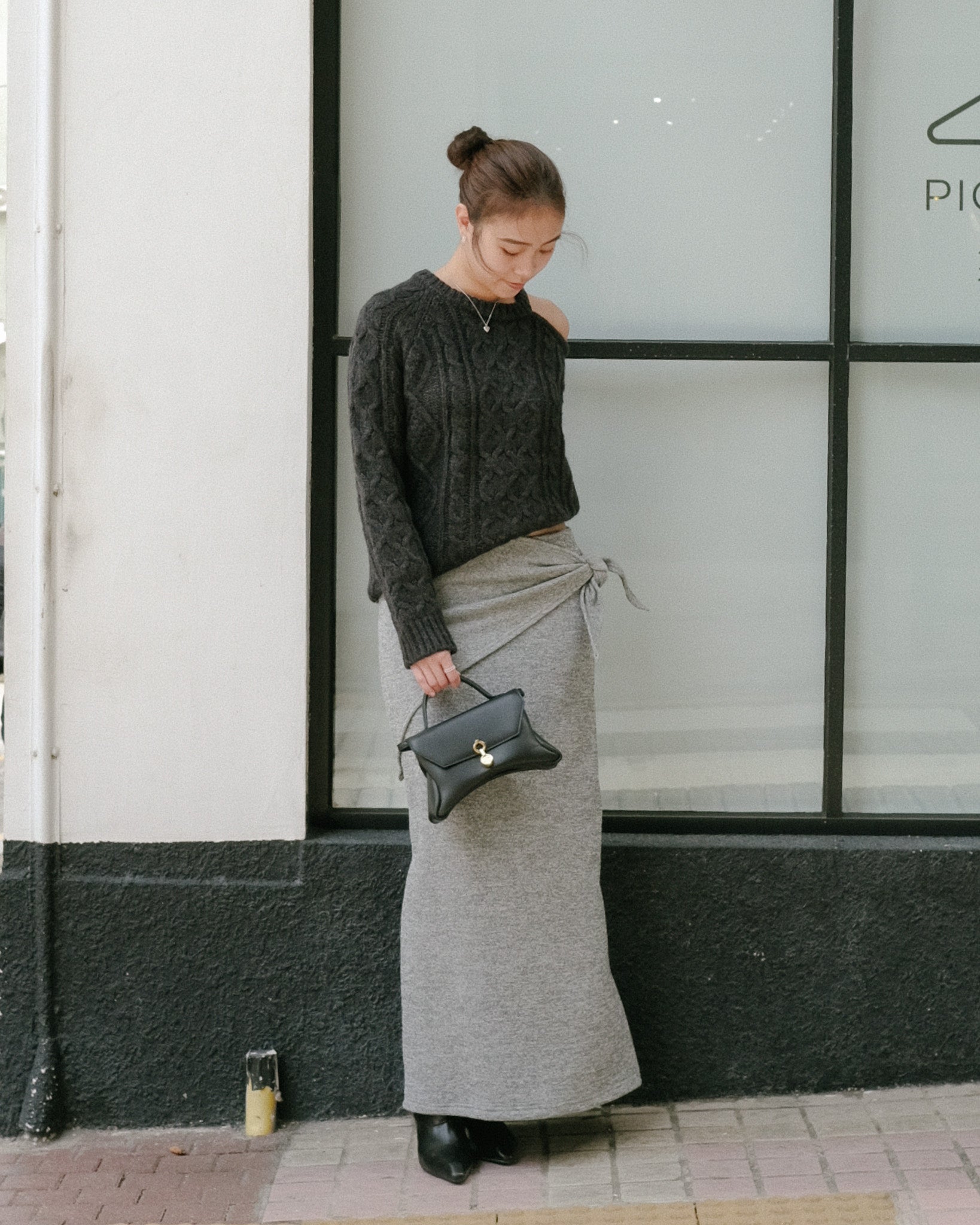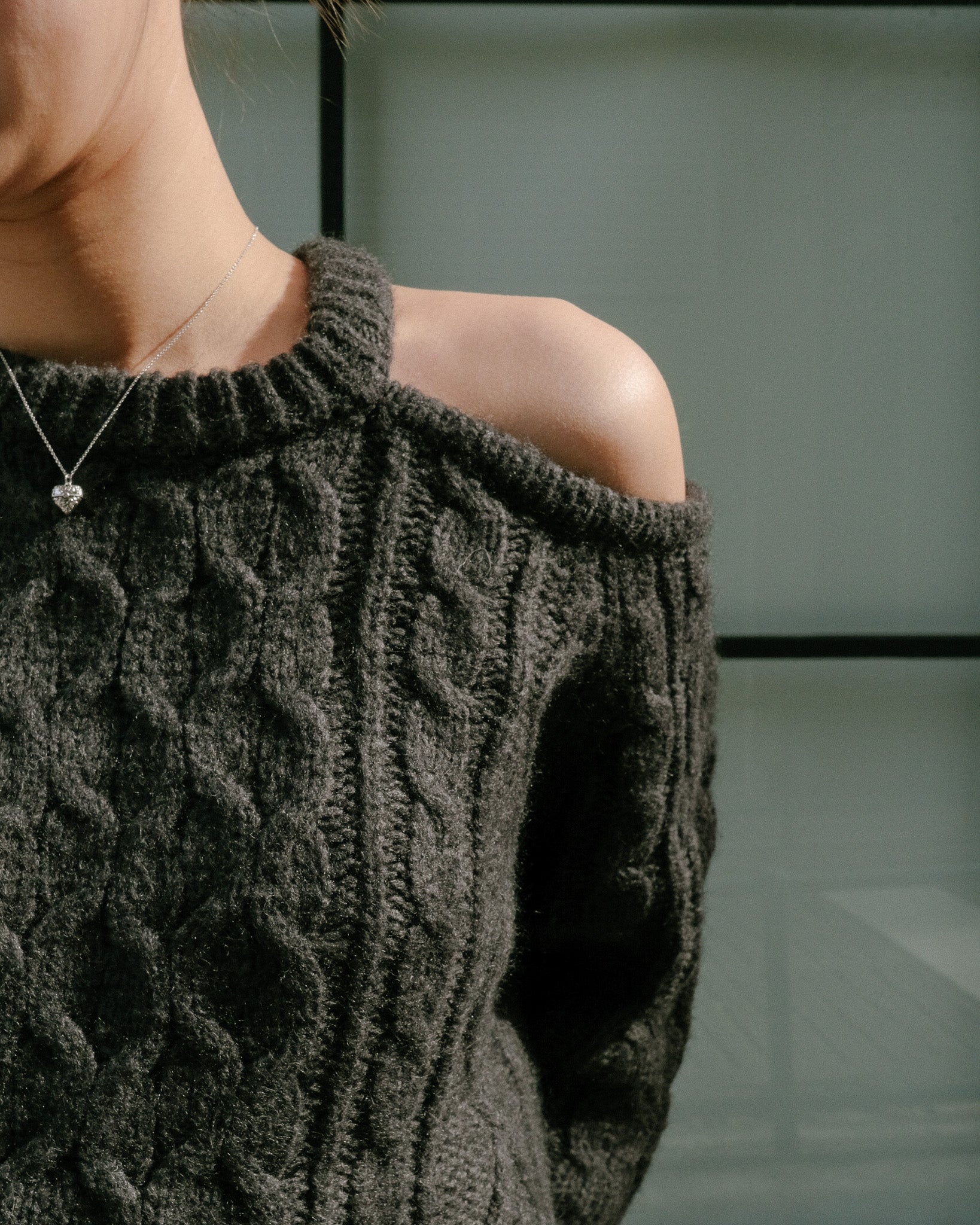不對稱露肩毛衣